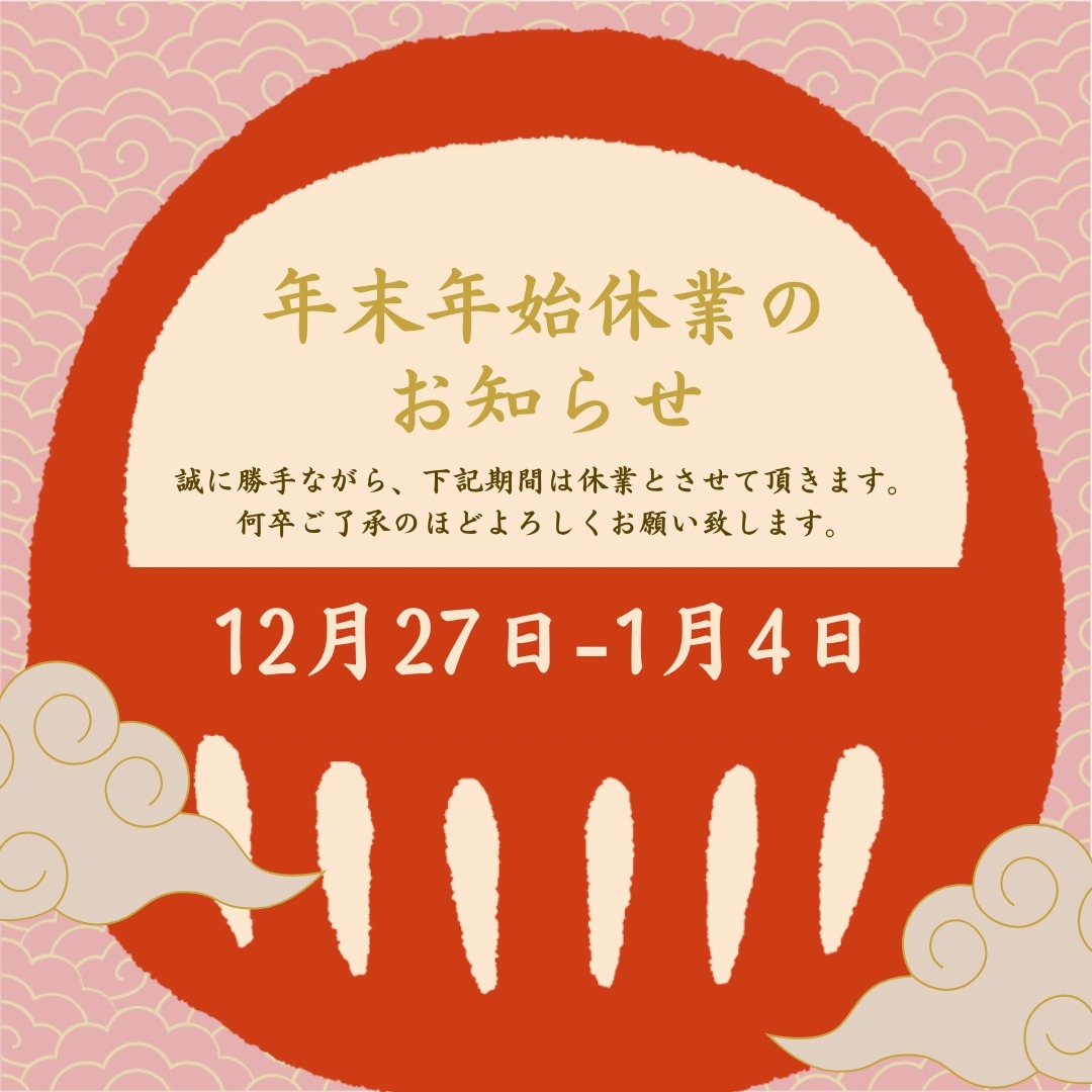 誠に勝手ながら12月27日(土)~1月4日(日)の9日間